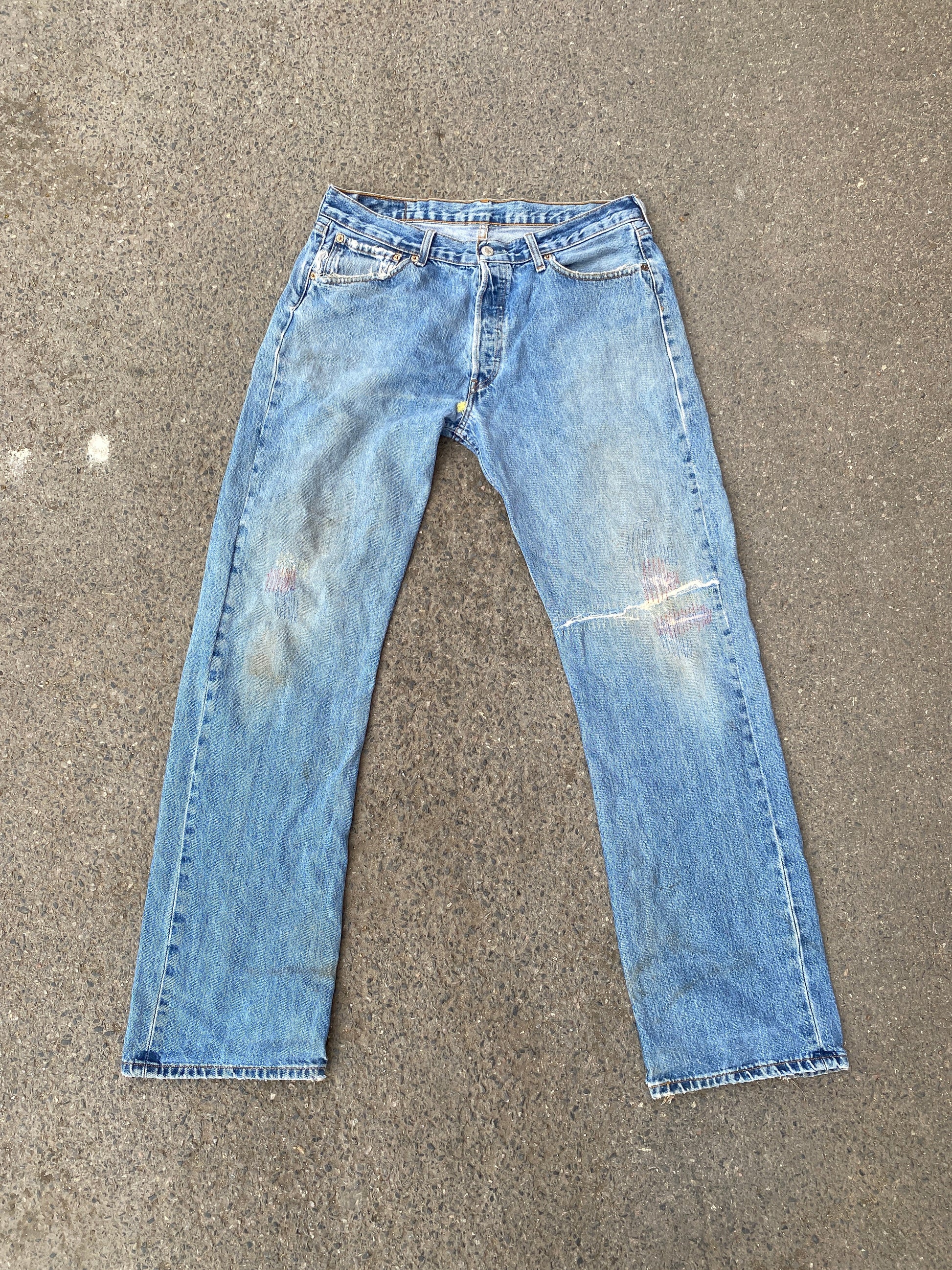 vintage Levi’s 501 Mended with yellow red a blue stitching